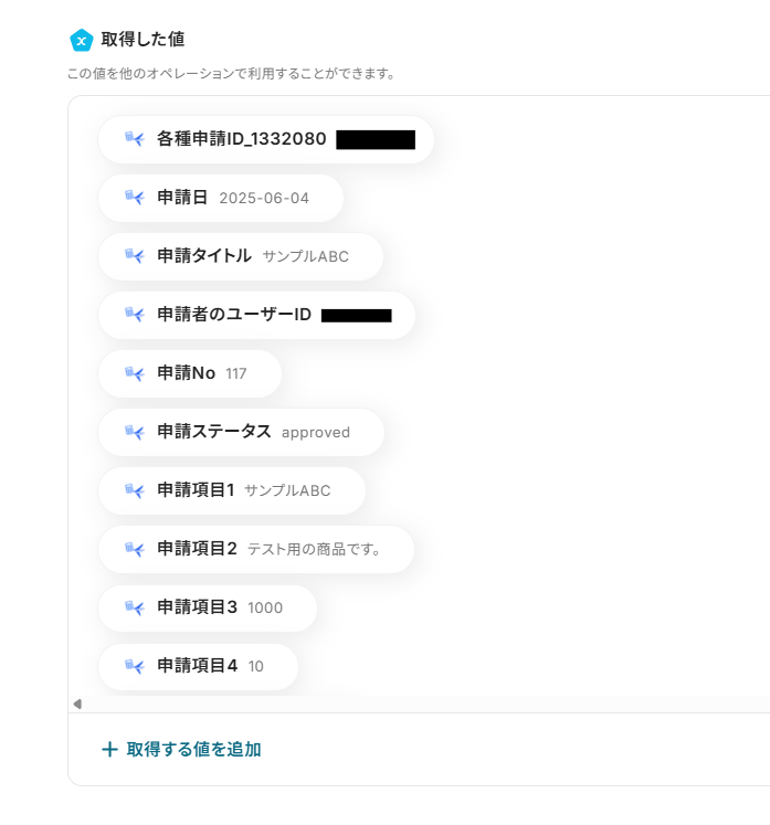 取得した値は、後続の設定で活用できます!