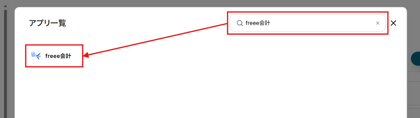 - アプリ一覧画面が表示されたら、右上の検索バーでアプリ名(ここではfreee会計)を検索して選択。