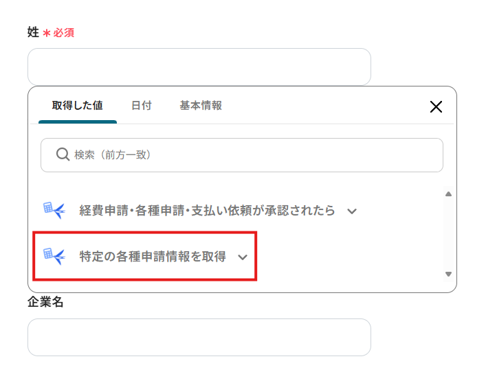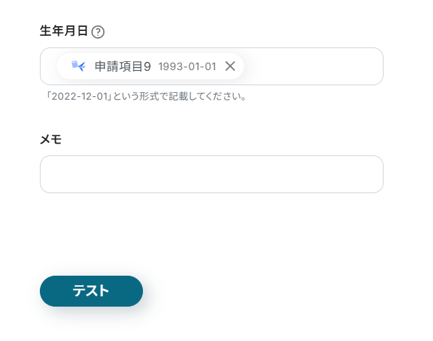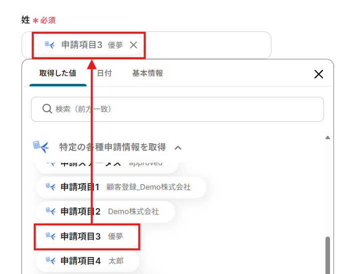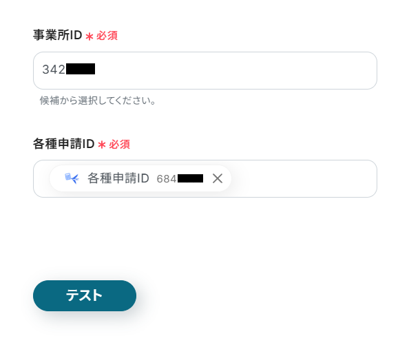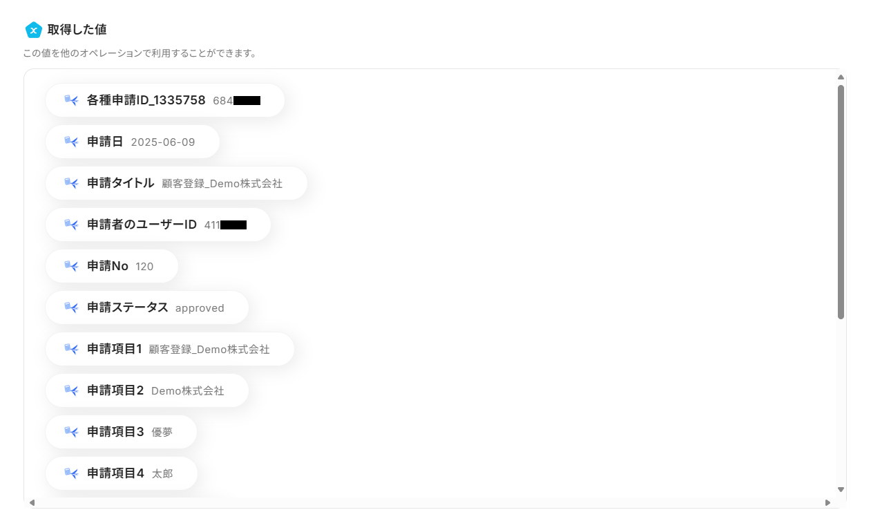 - テストに成功すると、承認された最新の申請の情報が「取得した値」に追加されます。