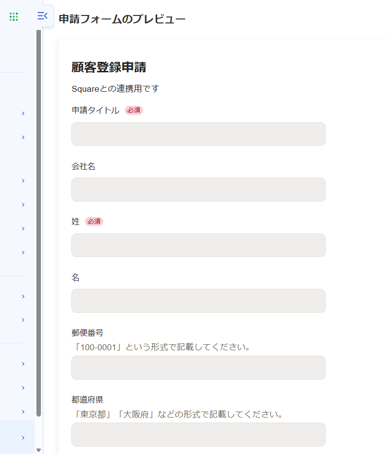 ここでは例として、下図の「顧客登録申請」フォームを使用します。