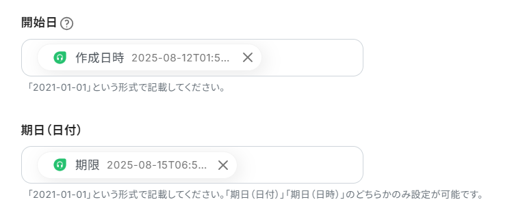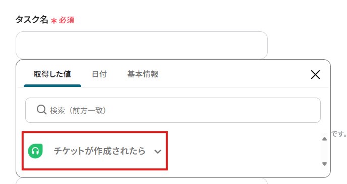 入力欄クリック時に表示されるトリガーアクションメニューから、タスク名に用いたい項目を選択してください。
