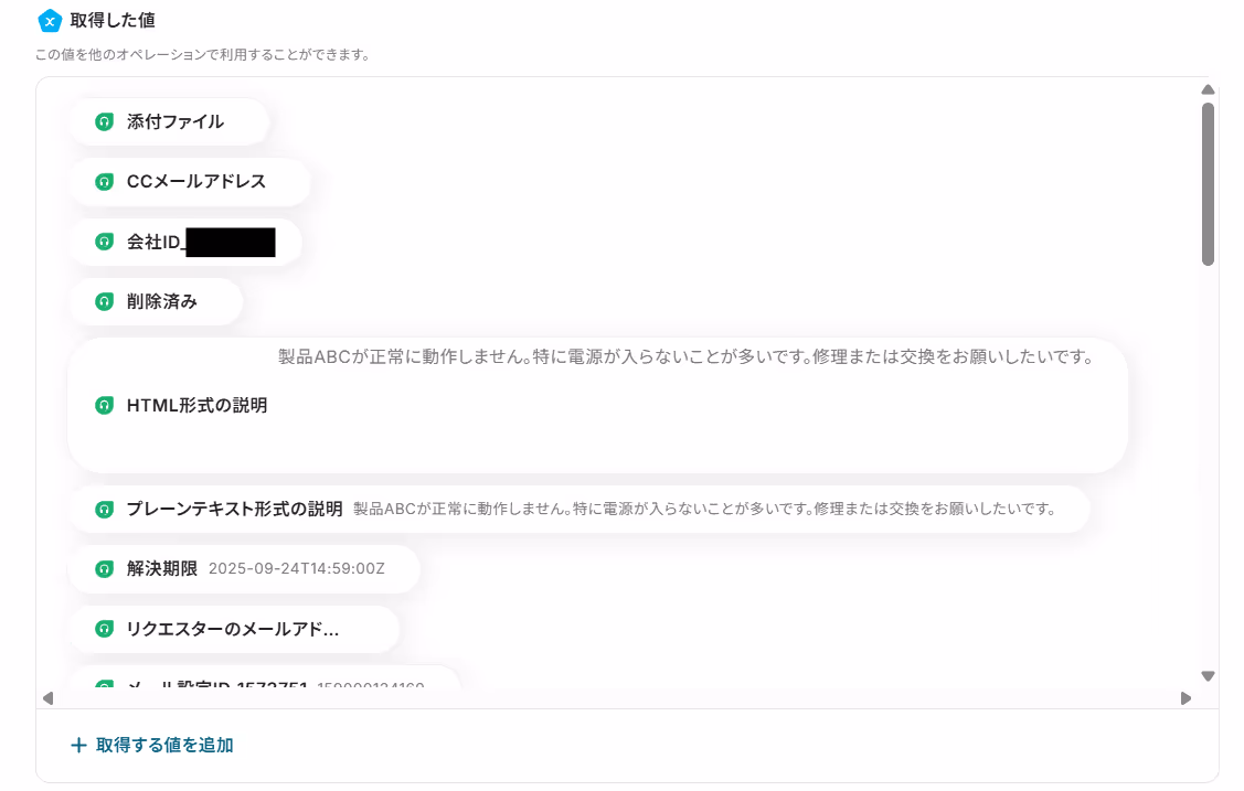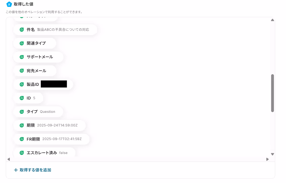 そのため、毎回変動が必要な情報(件名・チケットIDなど)は取得した値を活用しましょう!