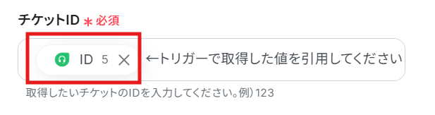 チケットIDは、テンプレートであらかじめ設定されています。