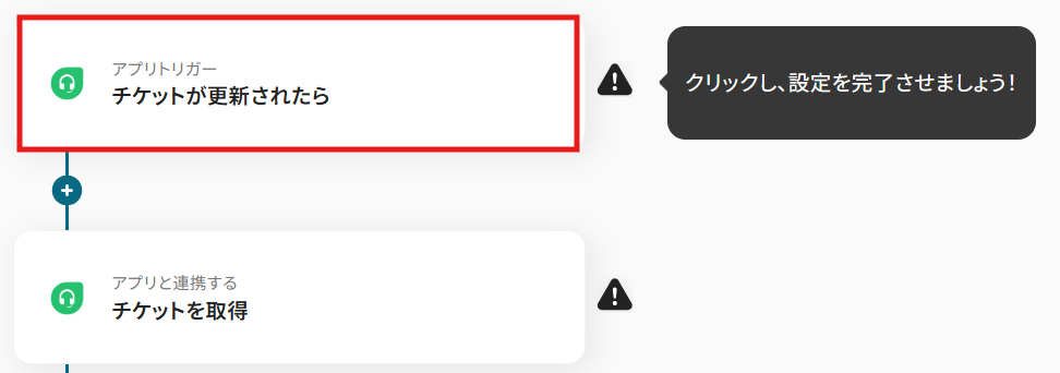 トリガーアクションは「チケットが更新されたら」のままで次に進みましょう!