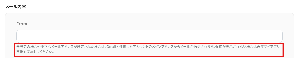 Freshdesk同様に、ステップ1でマイアプリ連携したGmailのアカウント情報が自動で表示されます。