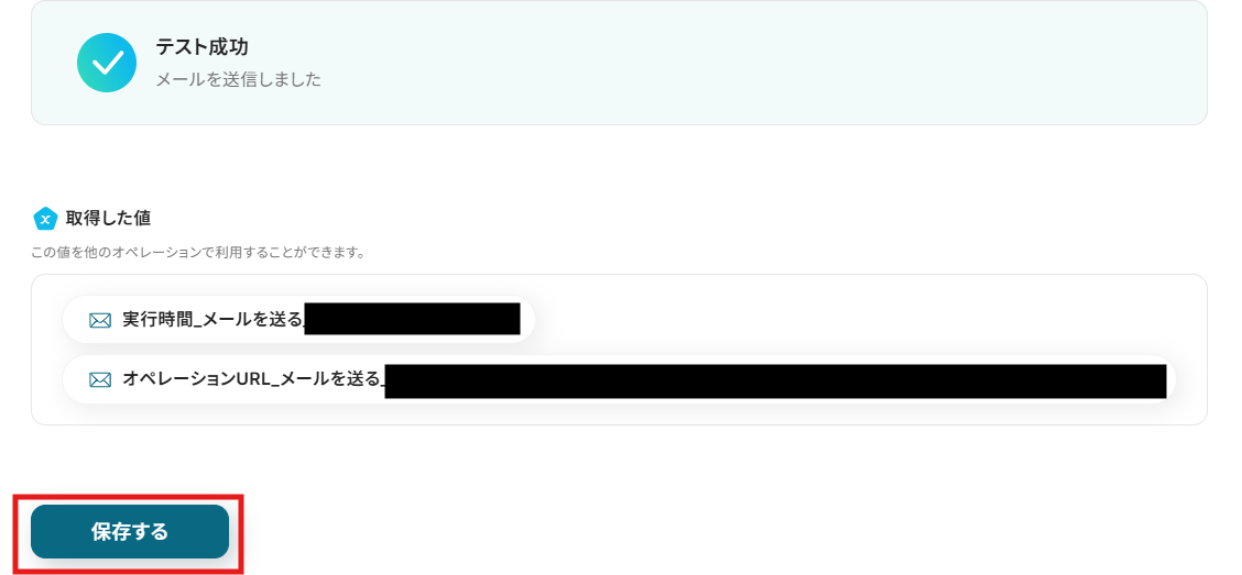 テストが成功したら、「保存する」をクリックして完了です!