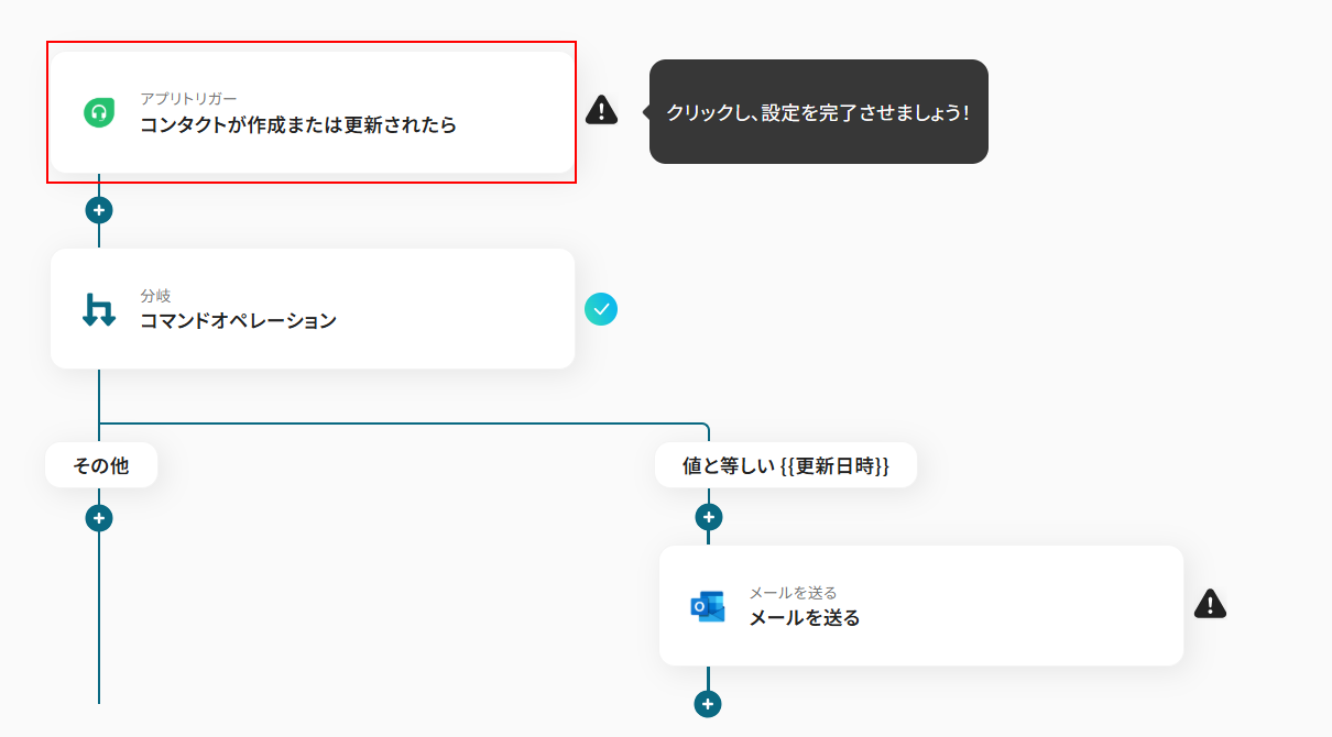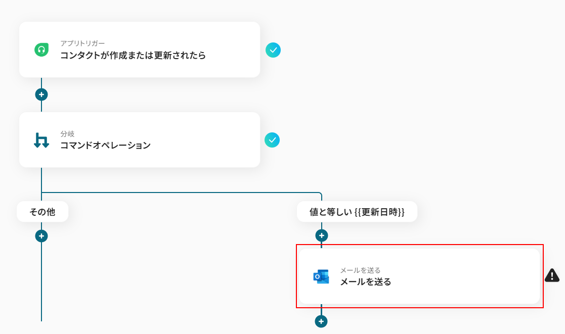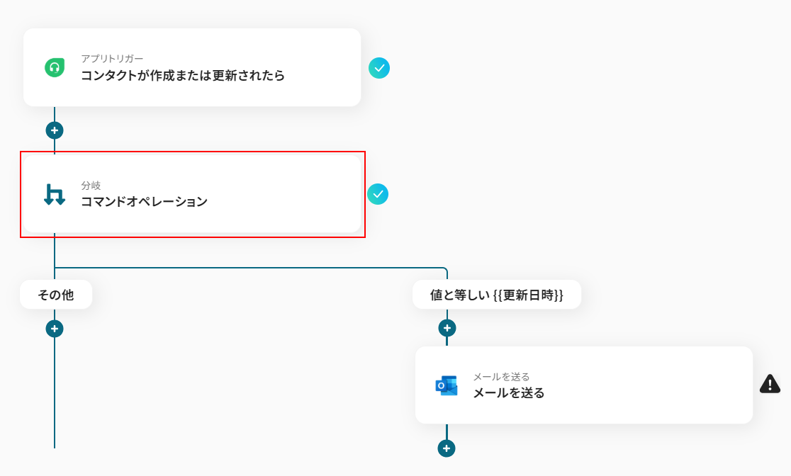 今回ご紹介するテンプレートでは、分岐機能を使用し、コンタクトが新規作成されたものか、更新されたものかを判断します。