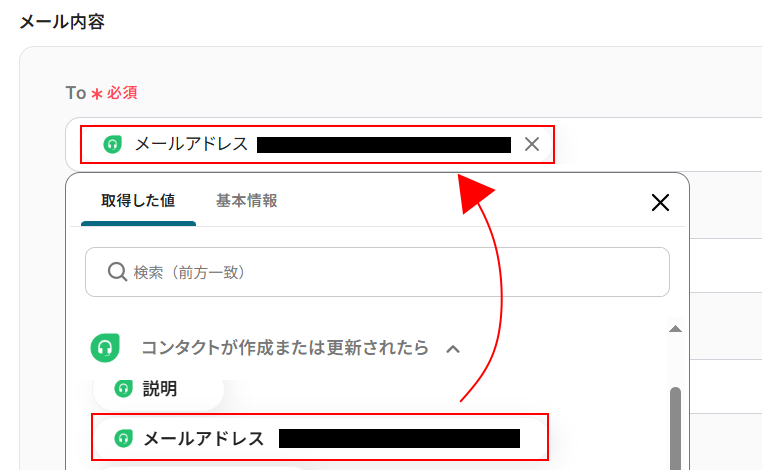 「コンタクトが作成または更新されたら」をクリックしてください。