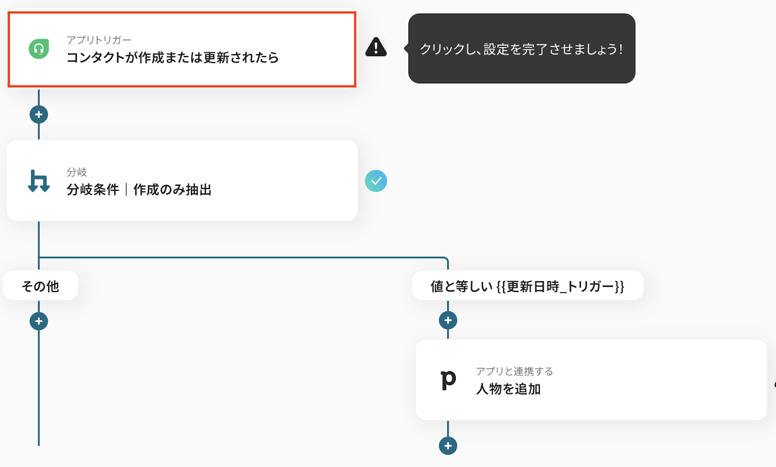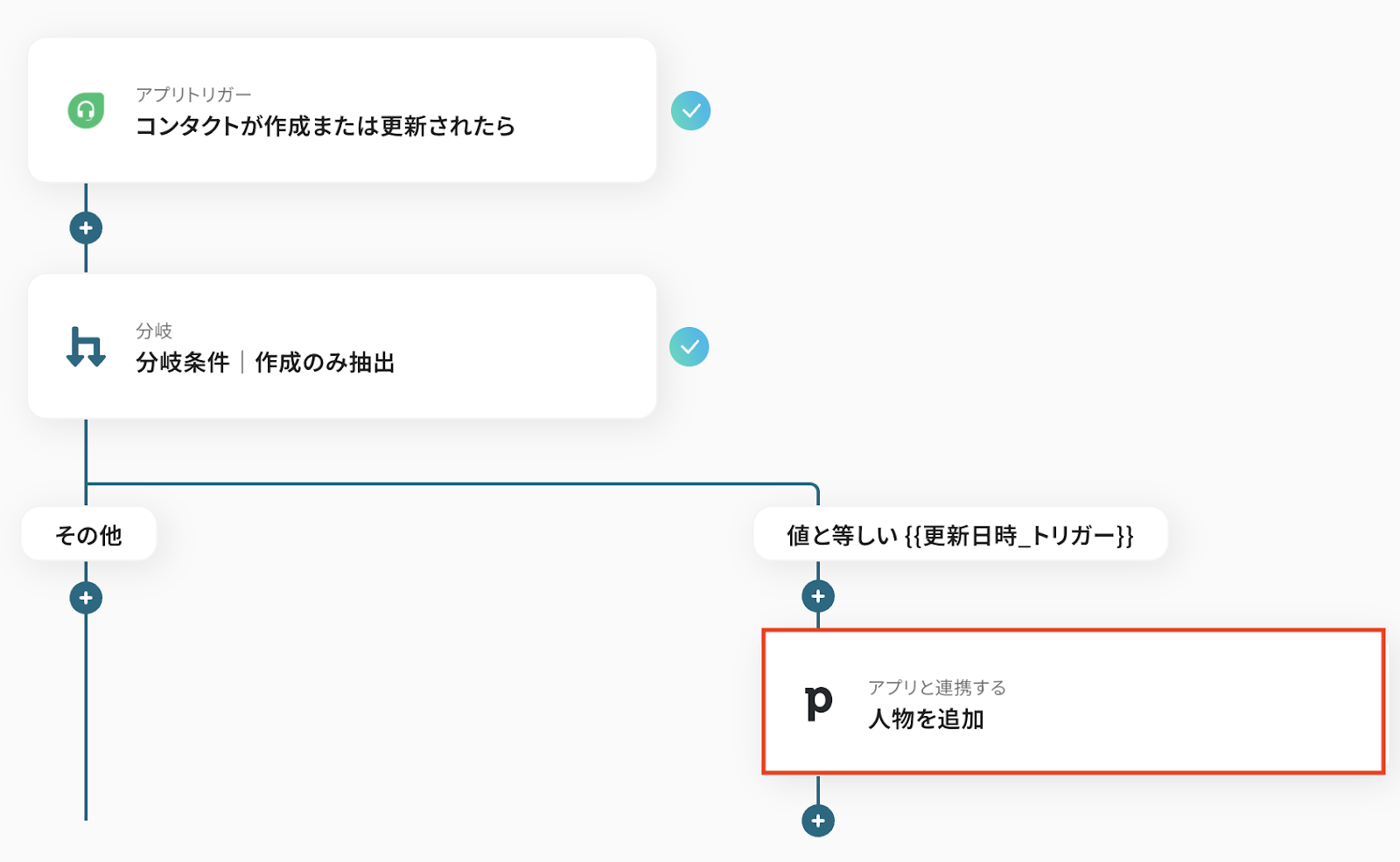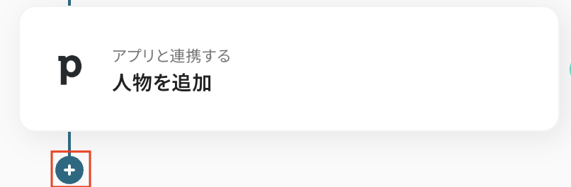 Pipedriveの「人物を追加」アクション直下の+ボタンをクリックします。