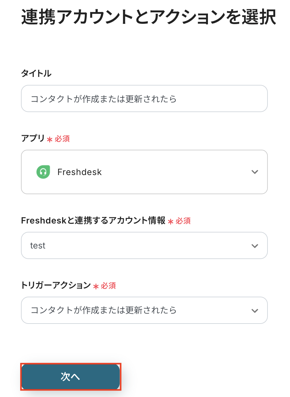 Freshdeskと連携するアカウント情報に問題がなければ、「次へ」をクリックします。