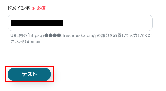 抜き出したドメイン名を入力できたら、「テスト」をクリックしましょう。