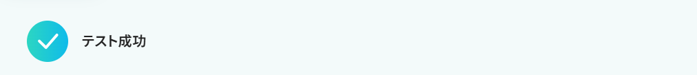 テストに成功するとテスト成功画面が表示され、下記のように取得した値(アウトプット)が表示されます。