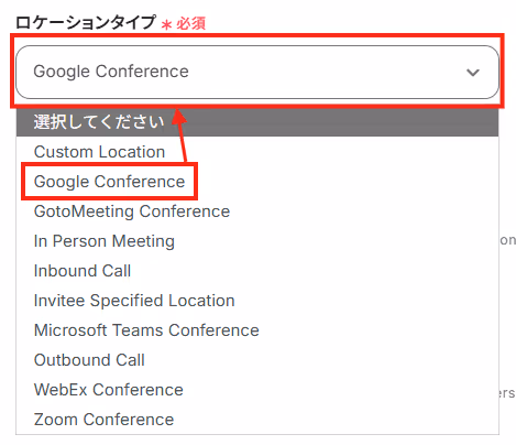 手入力・プルダウンから選択した箇所は、今後このフローで作成されるすべてのミーティングに適用されます。