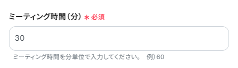- ミーティング時間:30、60など、数字のみを分単位で記載します。