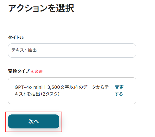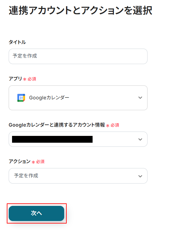 連携するアカウント情報にはステップ1で連携したアカウントか、連携時に使用していたYoomのアカウントが表示されます。