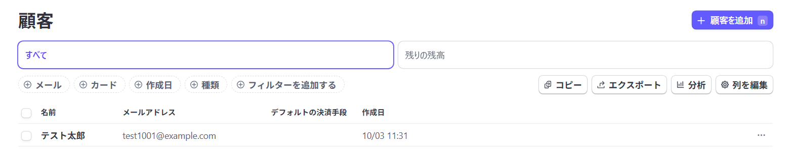 Stripeを確認すると、新規顧客が作成されています!