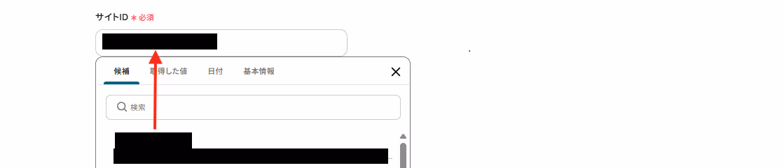 サイトIDとドライブIDは、枠内をクリックすると候補が表示されるので選択しましょう。