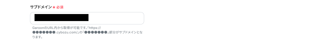 「ログイン名」「パスワード」は、連携するGaroon(サイボウズ)アカウントのログイン名・パスワードを入力します。