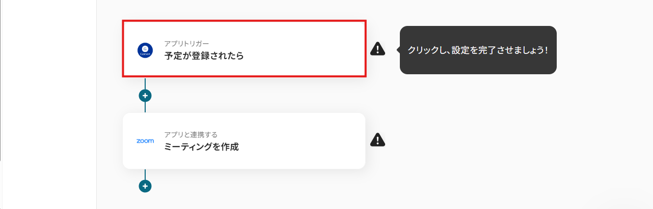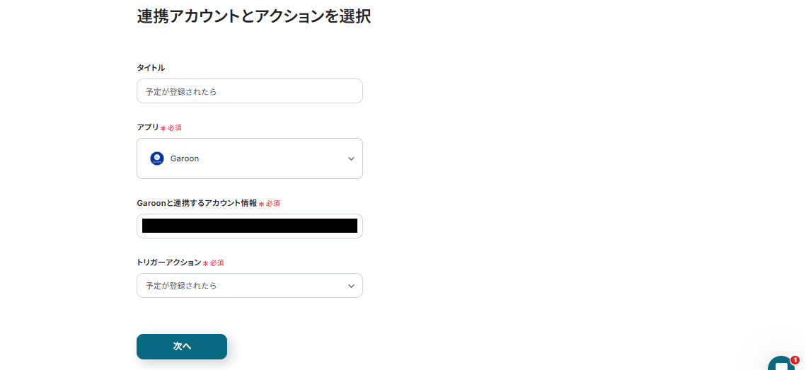 こちらのページは、設定済みのためトリガーアクションが「予定が登録されたら」になっていることを確認し、そのまま次のページに進みましょう!