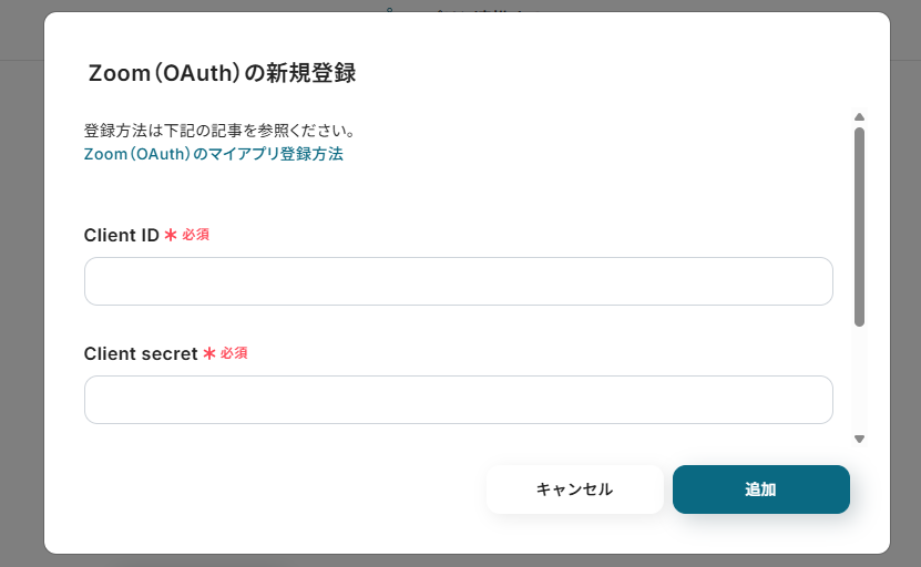 入力が完了したら、「追加」をクリックしてZoomのマイアプリ連携完了です!