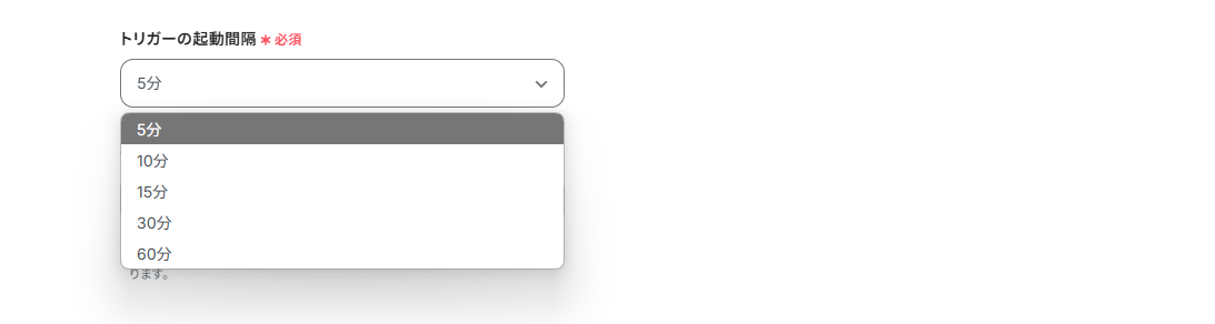 トリガーの起動タイミングは、5分、10分、15分、30分、60分から選択できます。