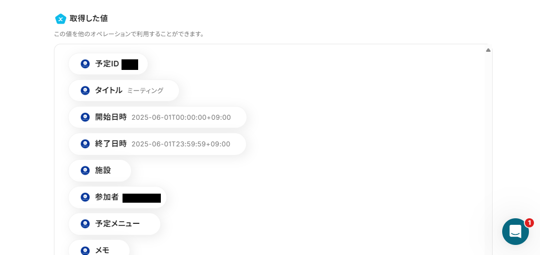 先ほど登録したスケジュールの情報が取得した値にアウトプットとして表示されます!