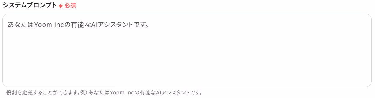 システムプロンプトもあらかじめ設定されていますが、必要に応じて編集してください。