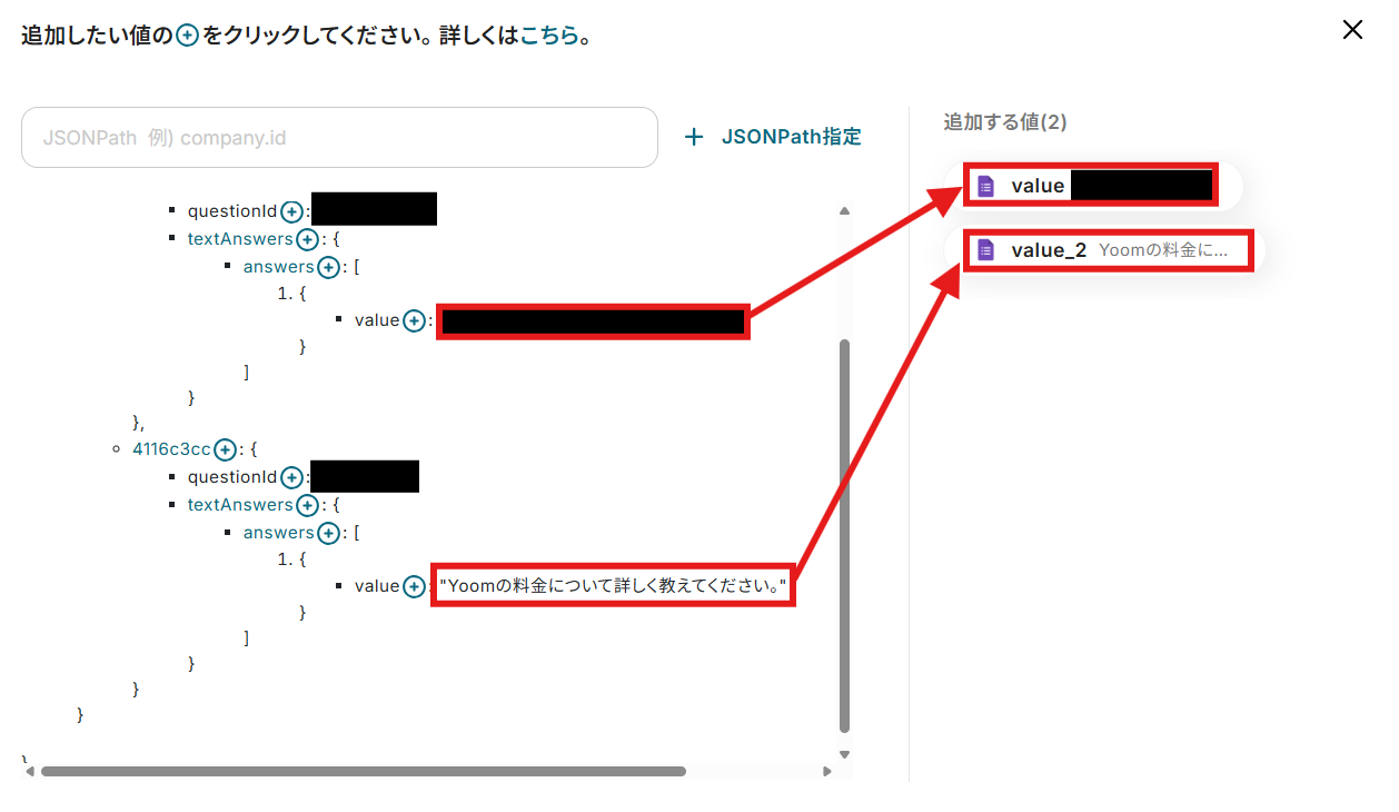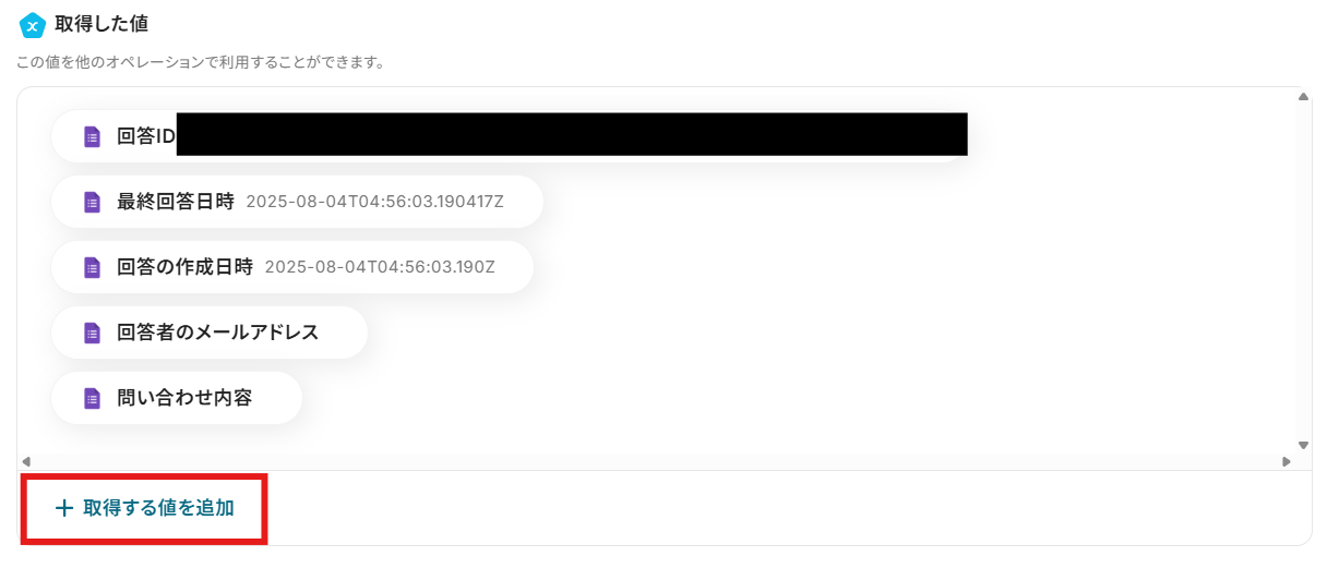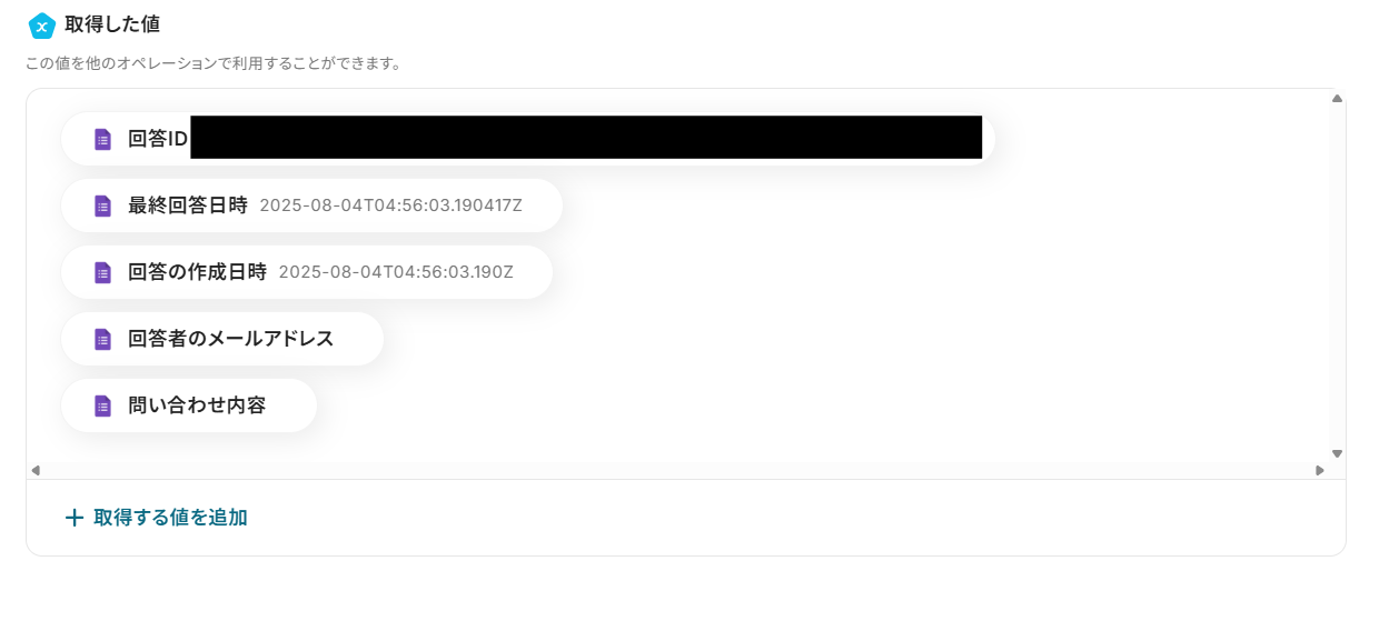 テストに成功したら「取得した値」に反映されます。 「取得した値」について、詳しくはこちら を参考にしてください。