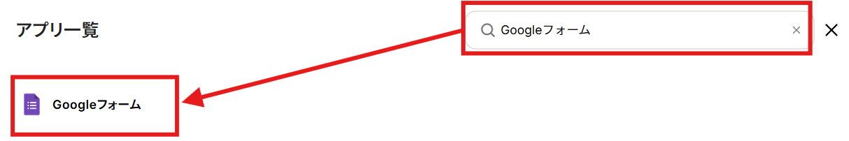 「新規接続」を選択すると「アプリ一覧」が表示されるので、Googleフォームを検索して選択しましょう。