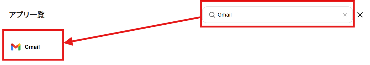 「新規接続」を選択すると「アプリ一覧」が表示されます。Gmailを検索して選択しましょう。