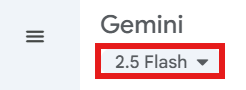 「モデル」を設定します。 Geminiで使用しているモデルを確認しましょう。ページの左上から確認可能です!