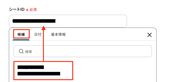 「シートID」も同様に、候補から選択してください。