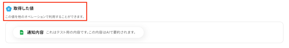 ※「取得した値(=アウトプット)」は、後のフローで使用します。