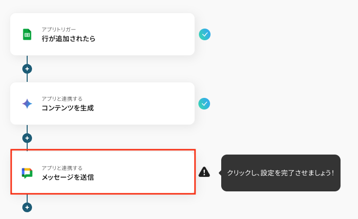 テストを実行し、Google Chatにメッセージが届いていれば、設定完了です。