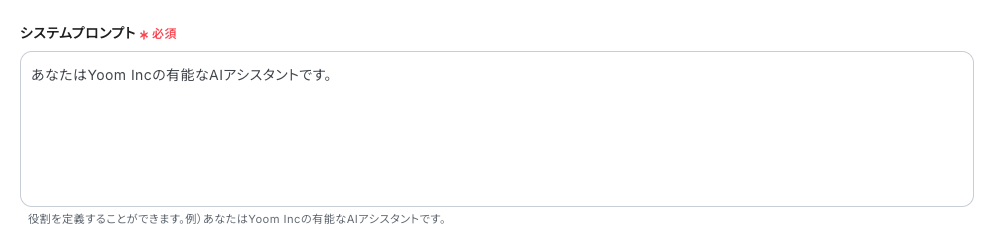「システムプロンプト」には、定義した役割を手動で入力します。