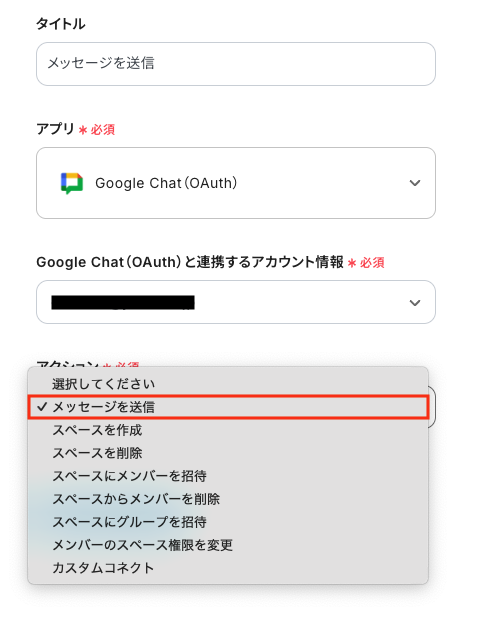 ステップ5:Google Chatのアクション設定