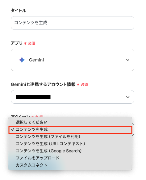 ステップ4:Geminiのアクション設定