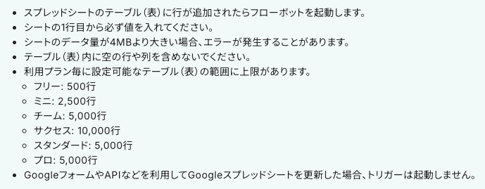 ・トリガー、各オペレーションでの取り扱い可能なファイル容量の詳細は下記をご参照ください。