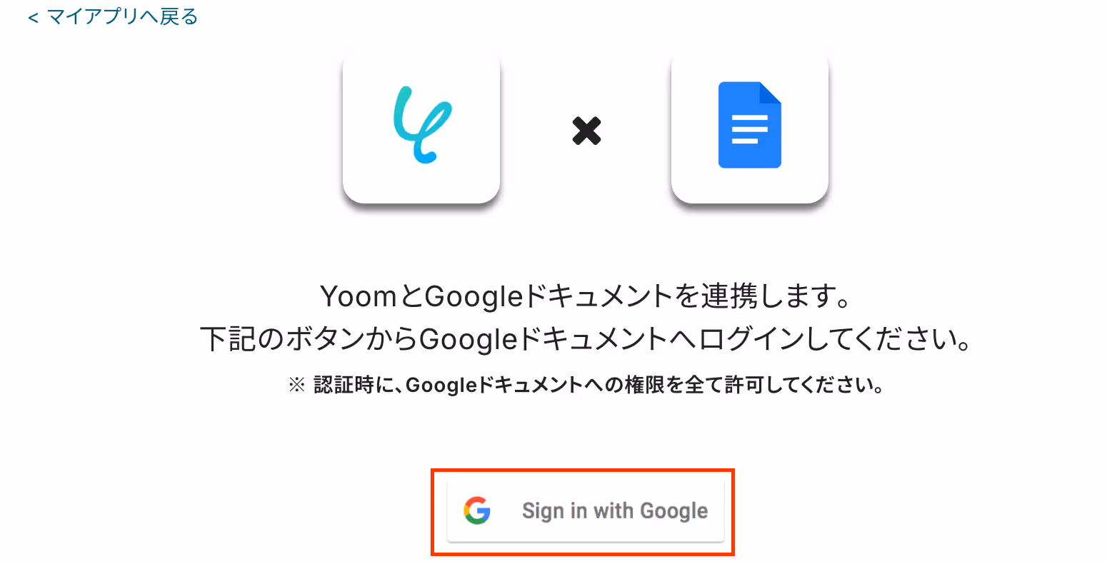 先ほどと同様に、マイアプリの新規接続一覧から、Googleドキュメントをクリックしてください。