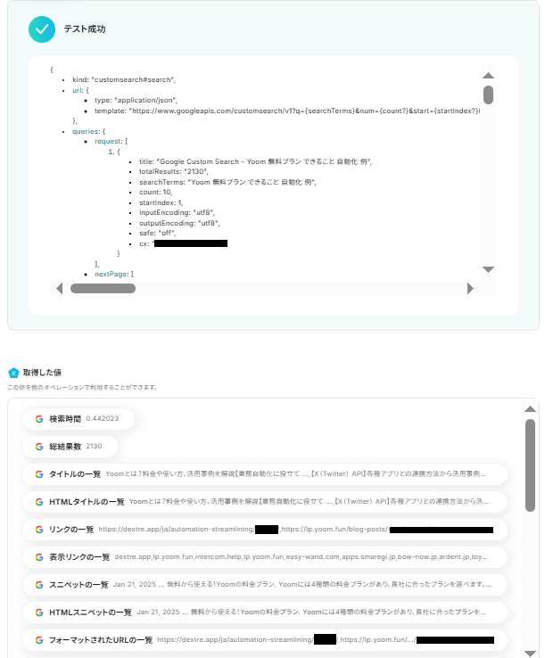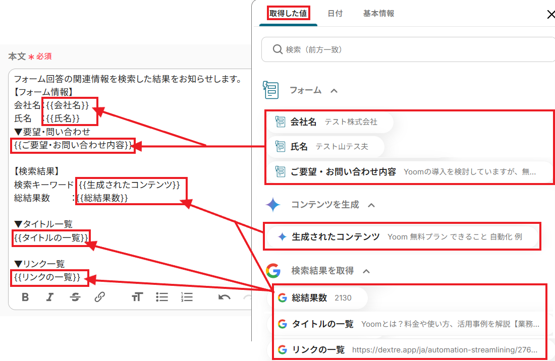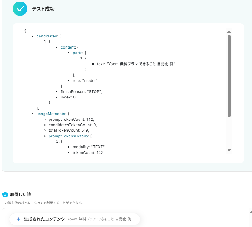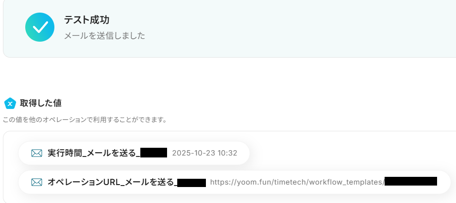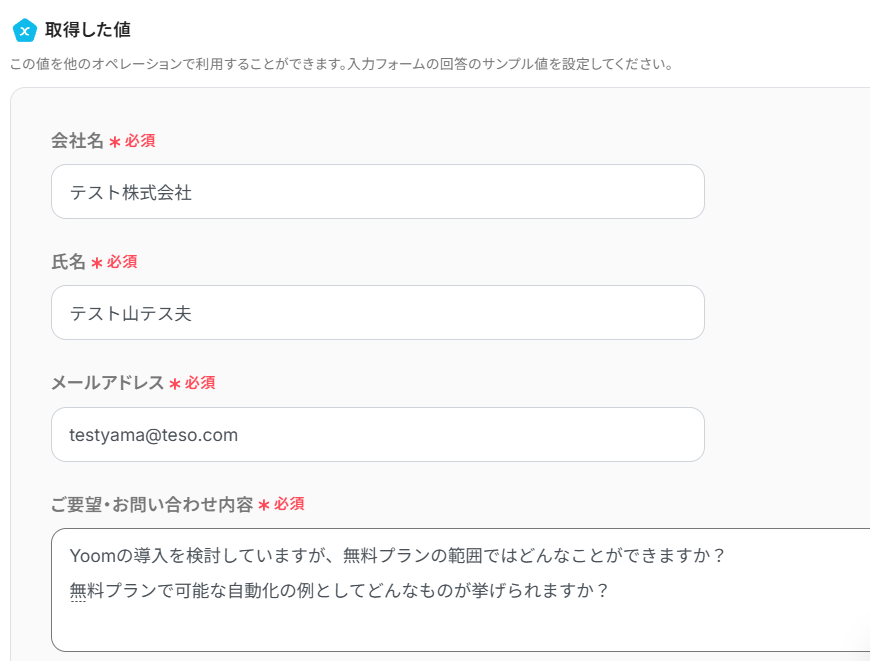 Yoomでは、テストを実行した際に取得できる情報のことを「取得した値」と定義しています。