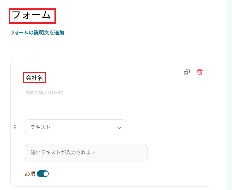 まずはフォームを作成していきます。必要に応じてフォームの名前や各項目を設定していきましょう。