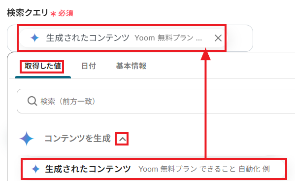 今回は検索クエリを自動生成するアクションとして設定していきましょう。