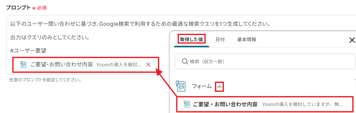 フォーム回答をもとにGeminiで検索クエリを生成し、Google検索した結果を通知する