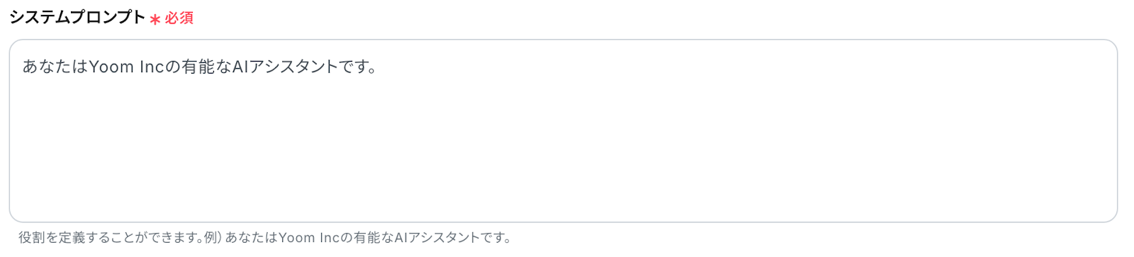 「システムプロンプト」でGeminiの役割を指示できます。 基本的には「あなたはYoom Incの有能なAIアシスタントです。」と設定しておきましょう。設定が完了したら、「テスト」を実行します。
