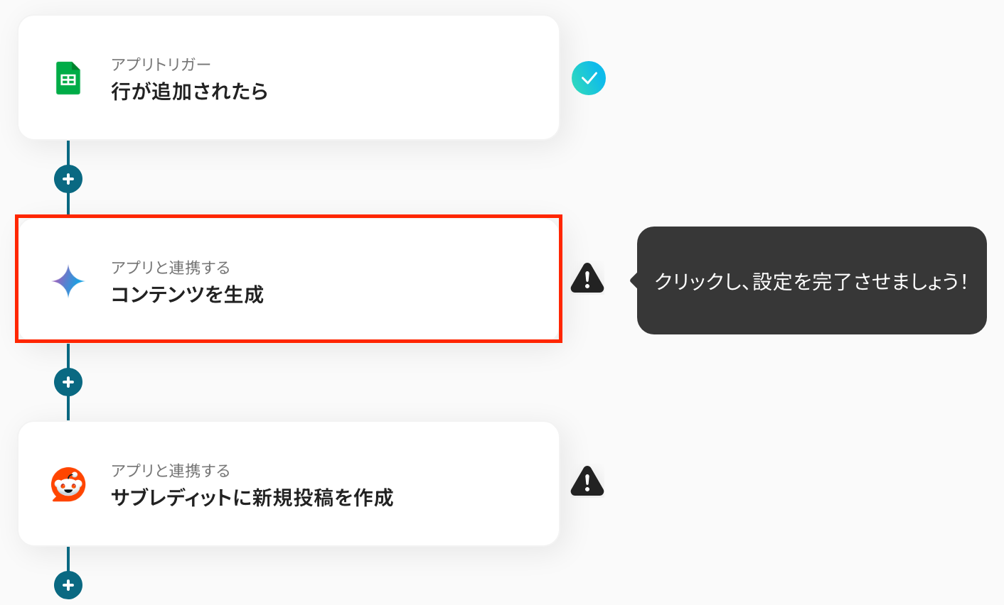 ステップ1:Google スプレッドシート・Gemini・Redditをマイアプリ連携