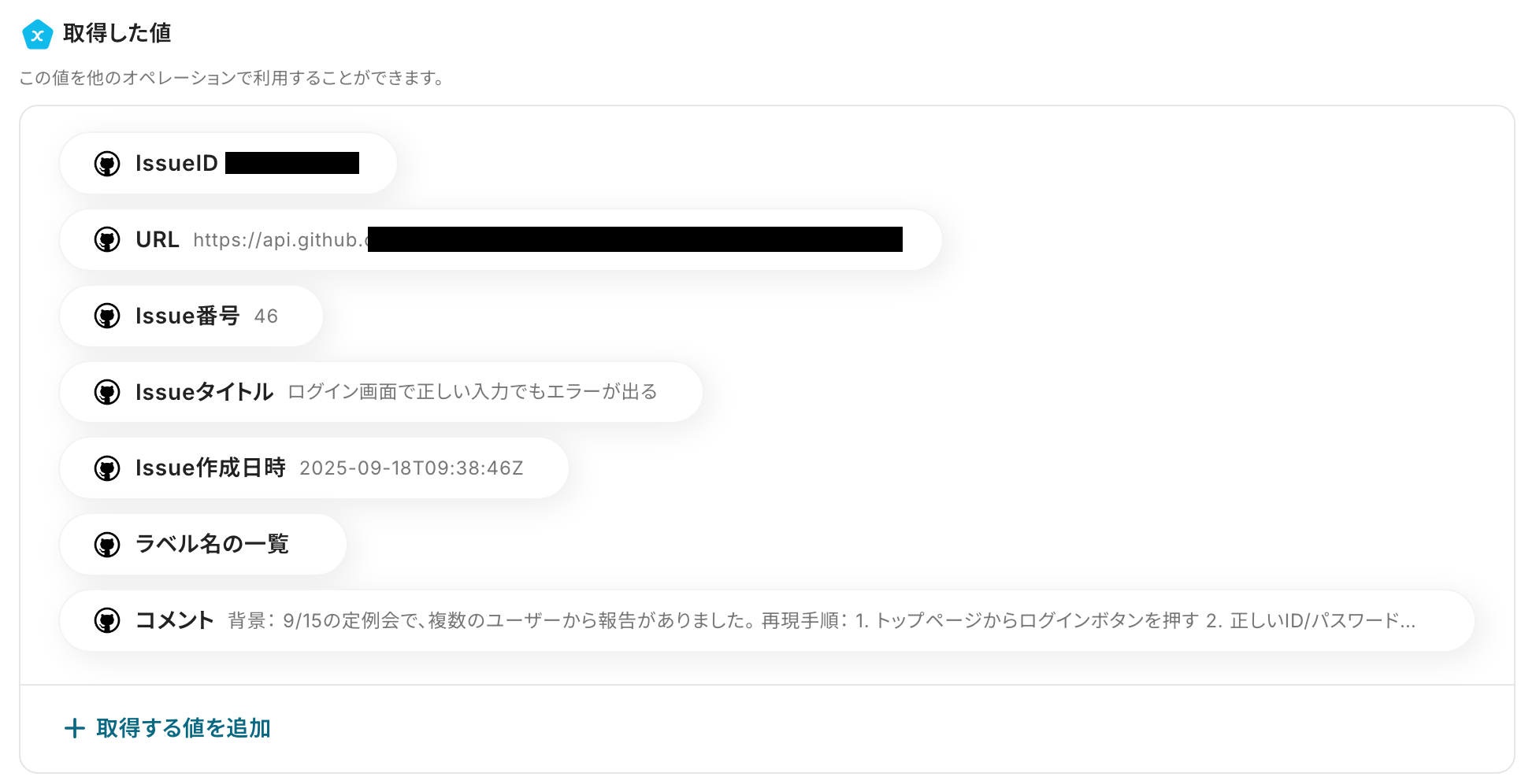 これにより、GitHubのIssueごとに変わる情報をGoogleドキュメントへ動的に反映できます。