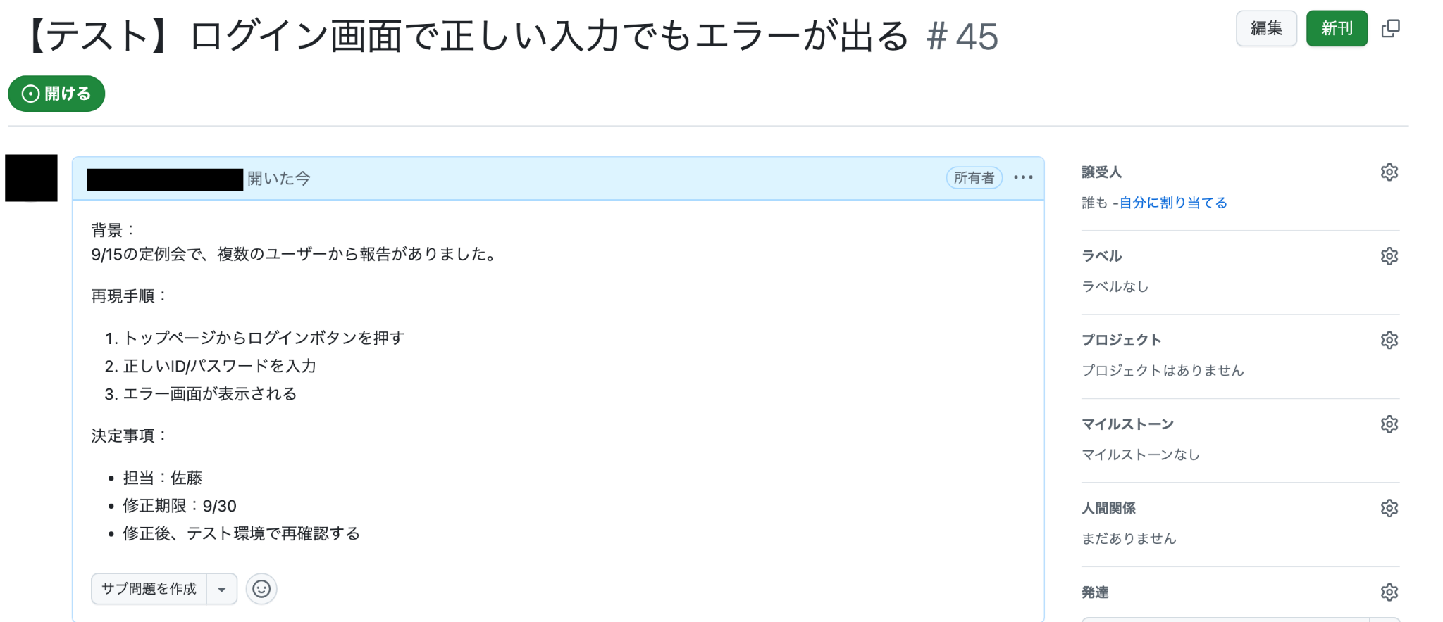 入力が完了したら、GitHubにIssueを作成しましょう!