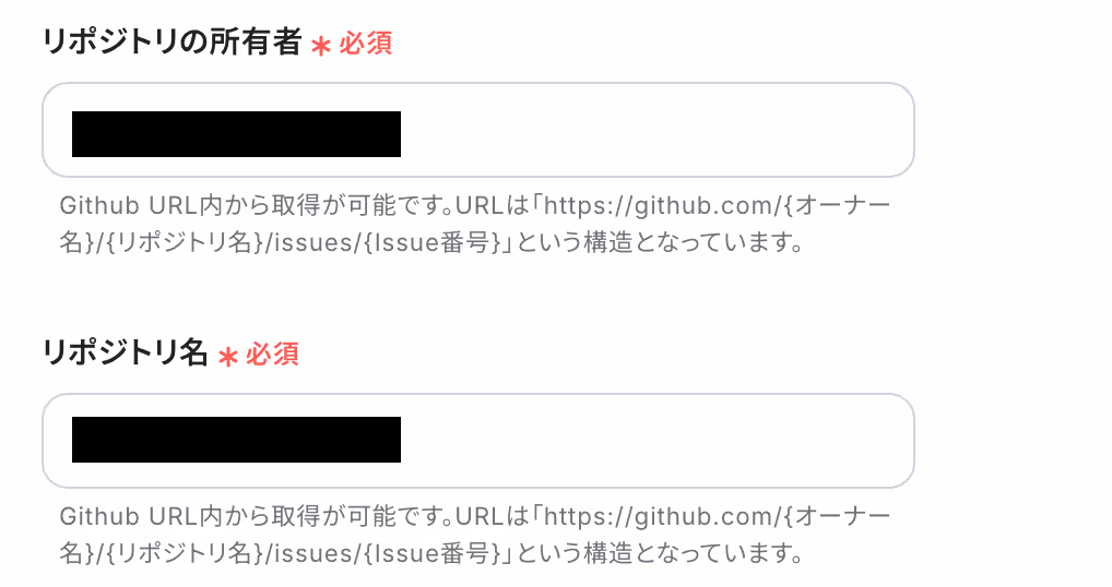 ※「リポジトリ所有者」とは、GitHubのURLにおける https://github.com/●●/リポジトリ名 の ●● に当たる部分です。