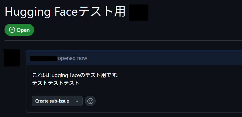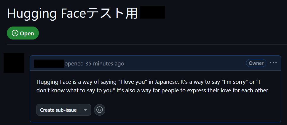 GitHubの該当Issueにアクセスしてみると、しっかりHugging Faceで生成したテキストが反映されていますね。