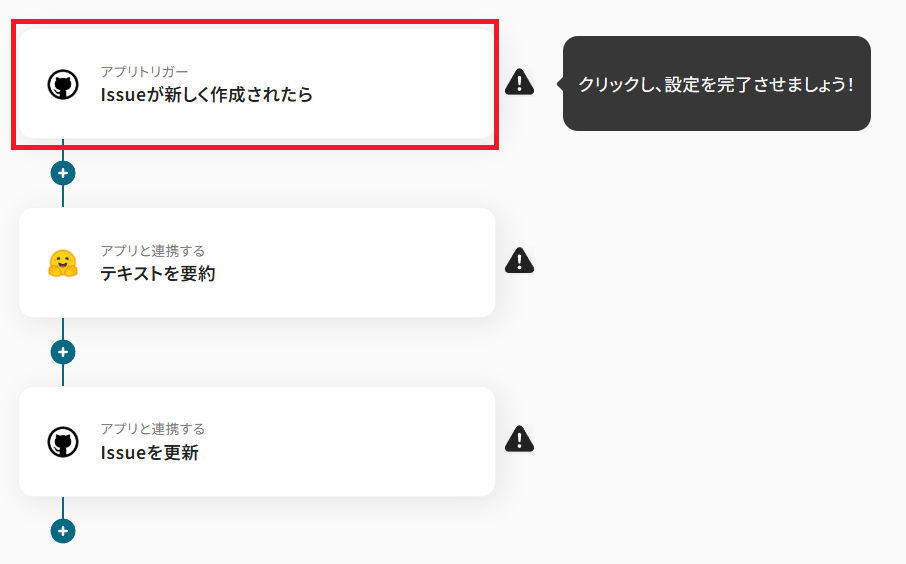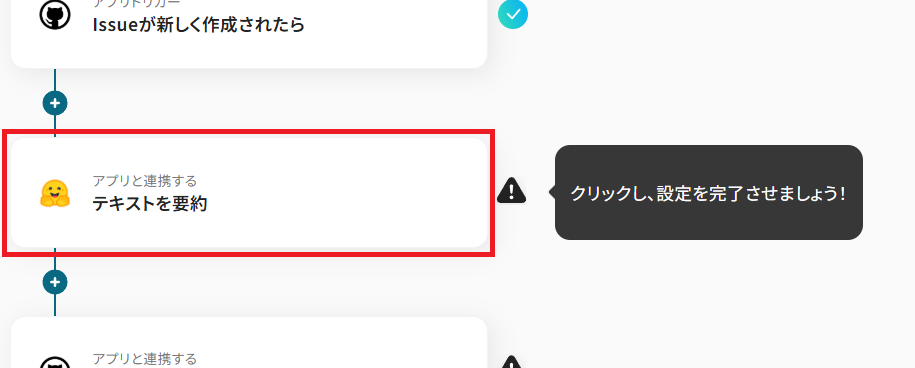 GitHubに新しくIssueが作成されたことをYoomが検知したら、Hugging Faceで内容を要約するアクションを設定していきましょう。